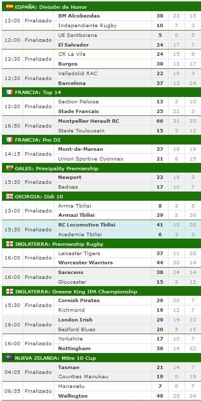 Resultados Int’l, 23/9 Premiership – Foto: gettyimages Te traemos todos los resultados internacionales de los partidos disputados este domingo en los distintos torneos… RESULTADOS Int’lDomingo 23 de Septiembre 2018 MoHicanosrugby.com/GENRUGBY Ant Siguiente
